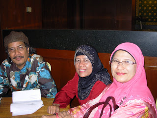 Gambar ini diambil di Pesta Buku Selasa 23 April yang lalu.Sedang berjalan-jalan dengan Rokiah Hashim, berjumpa Siti Zaleha Hashim dan Imuda sedang bersiap-siap menunggu acara dbp petang itu. Kali ini acara dbp tertumpu kepada pantun.